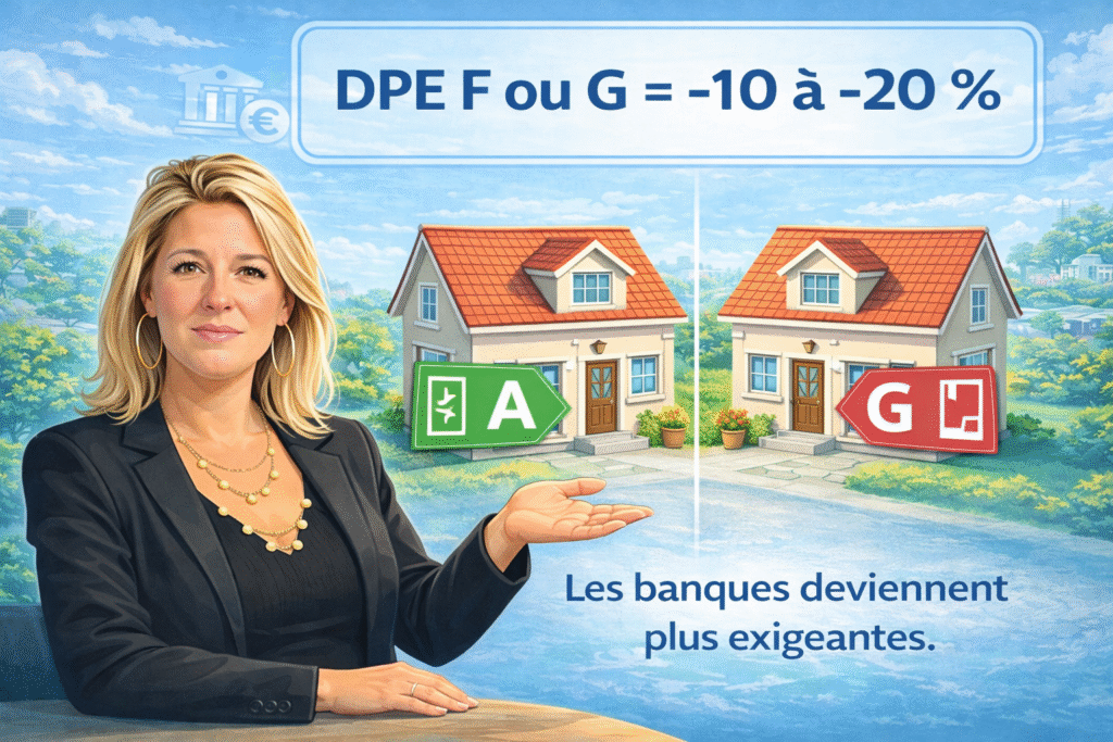 Oui. Un DPE F ou G peut entraîner une décote de 10 à 20 % et compliquer l’obtention du prêt